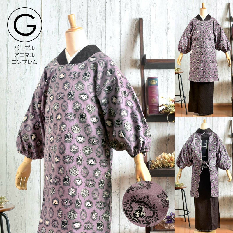 Gパープル アニマルエンブレム 綿80%、麻20%