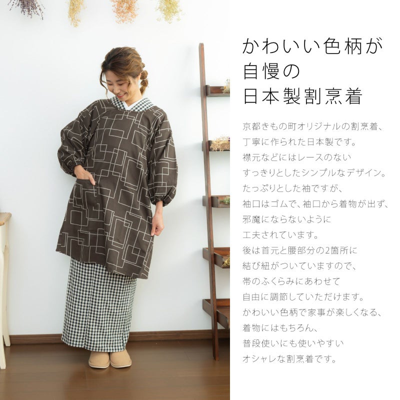 京都きもの町オリジナルの割烹着、丁寧に作られた日本製です。