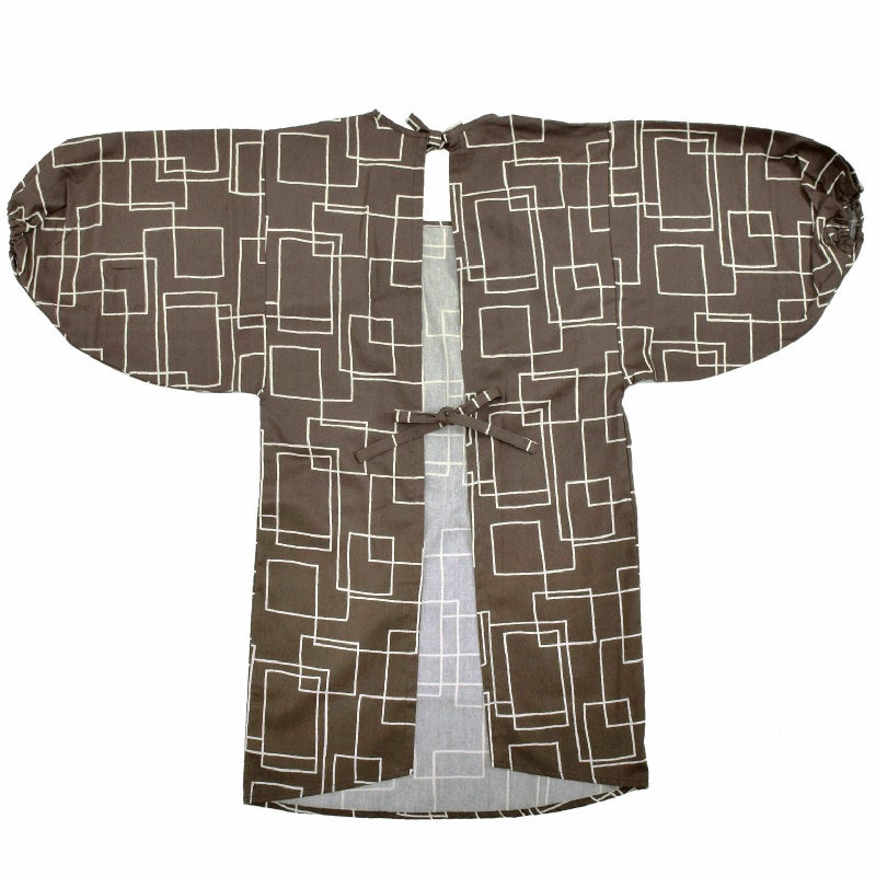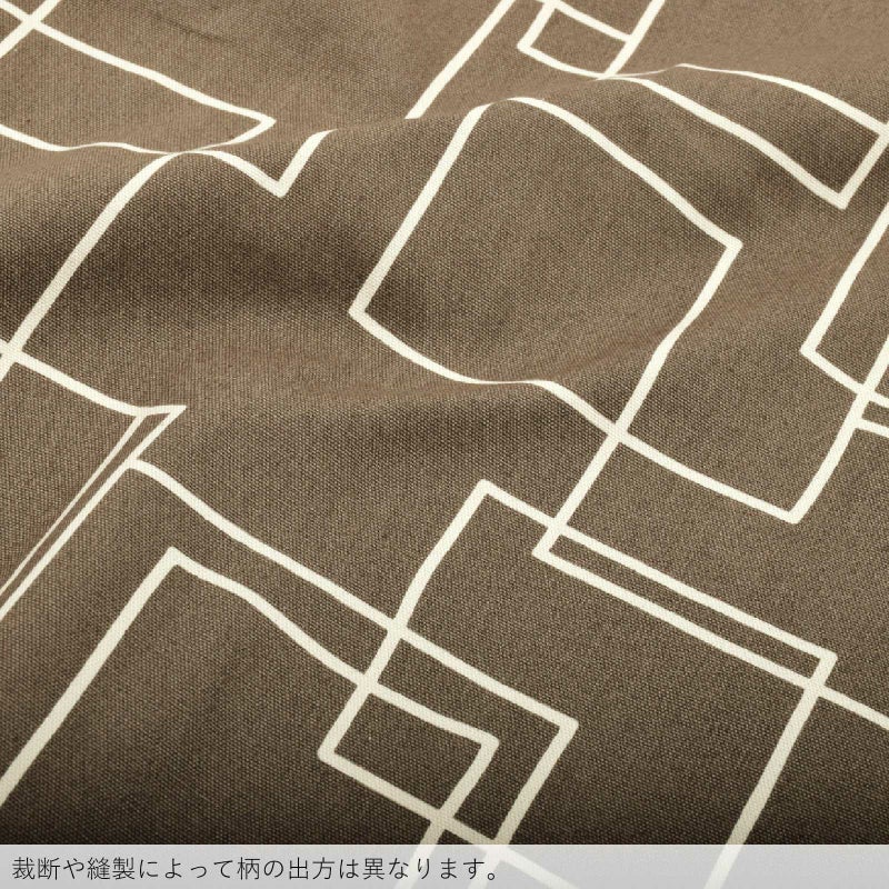 【カラー】ややグレイッシュな茶色地に、オフホワイトの手描き風のラインで表現されたランダムなスクエア柄。