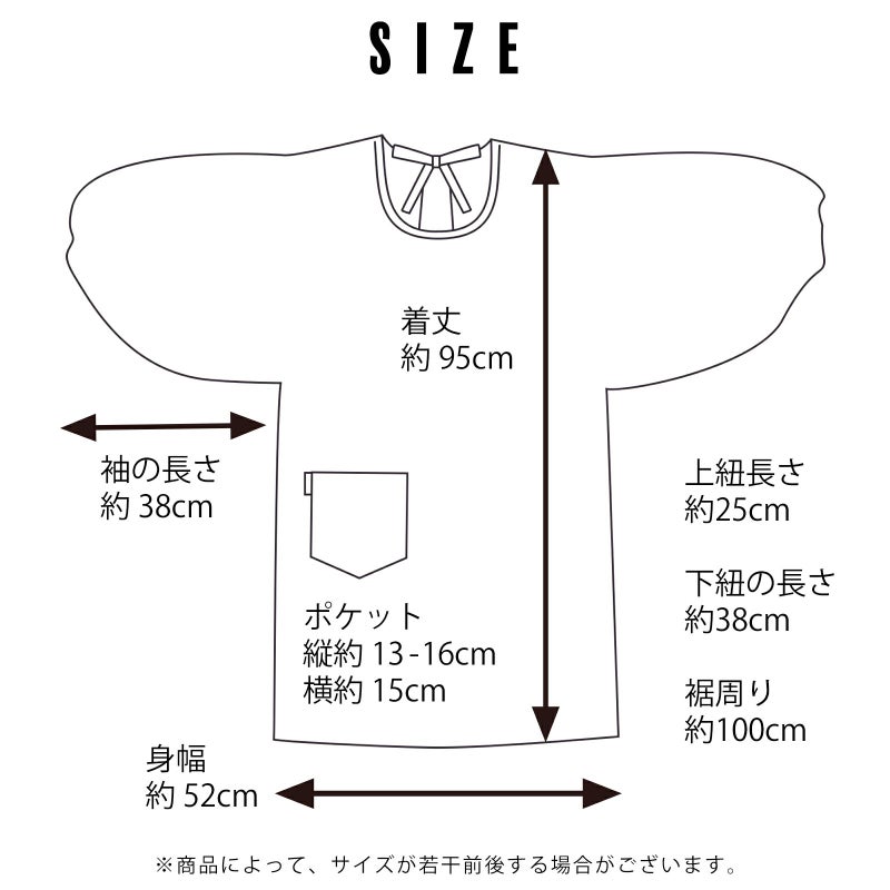 丈約95cm/身幅約52cm/袖の長さ約38cm/裾周り約102cm