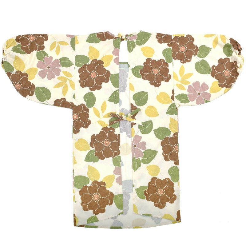 【カラー】わずかに黄みを含んだオフホワイトの地に茶色のお花、黄緑色の葉の花模様。