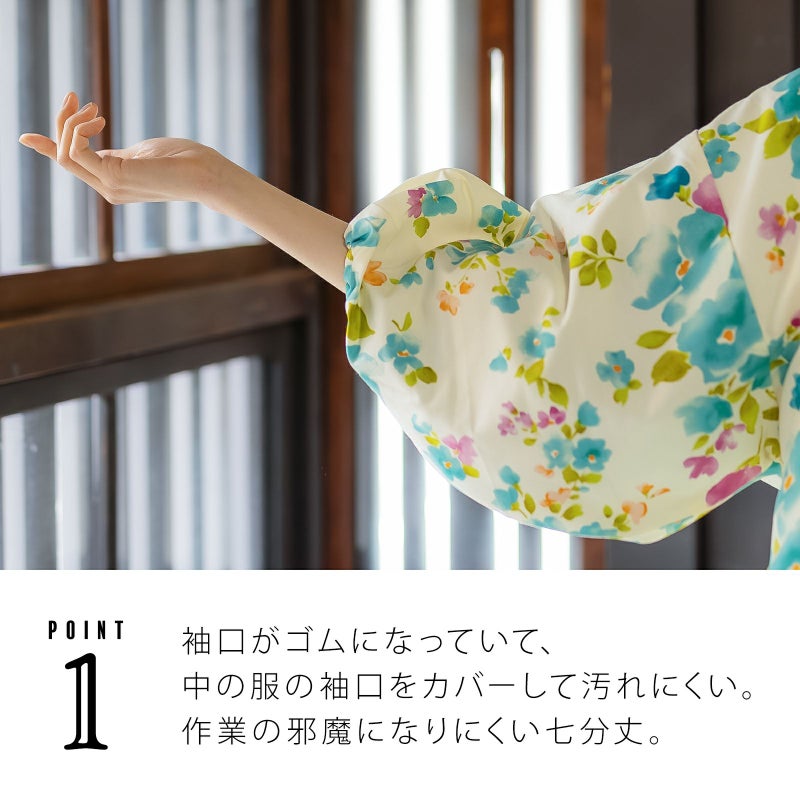 家事や料理など作業時の汚れ防止に、着物だけでなく普段着の洋服にも合わせていただけます。