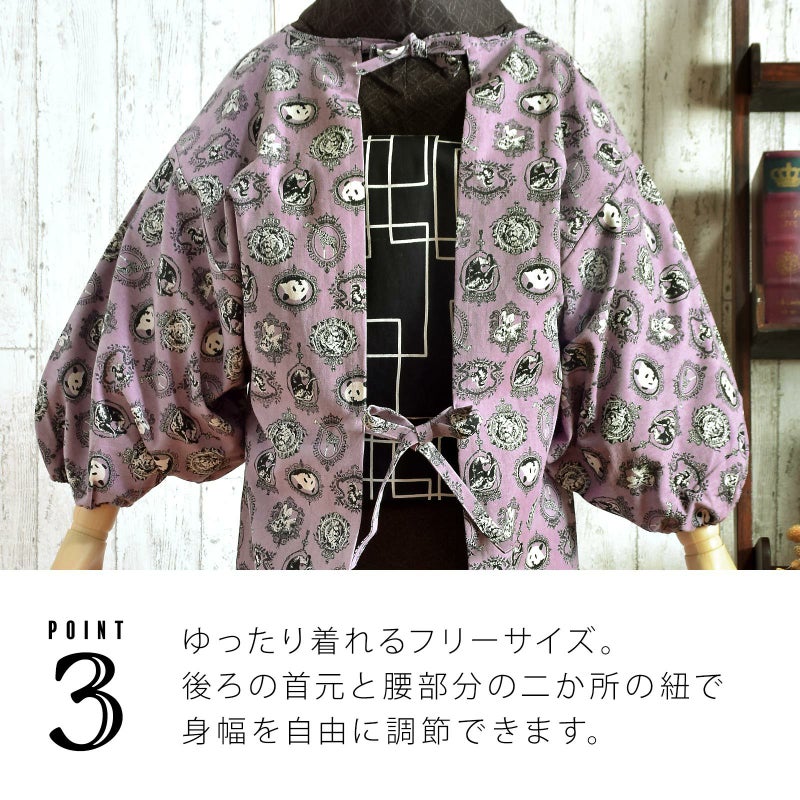 たっぷりとした袖ですが、袖口はゴムで、袖口から着物が出ず、邪魔にならないように工夫されています。
