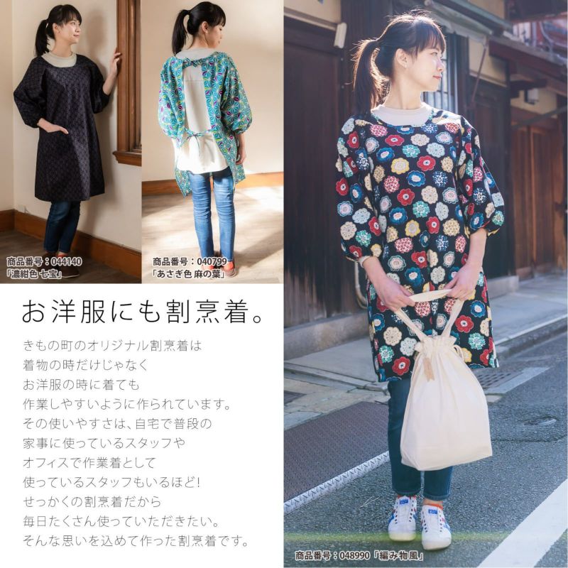 京都きもの町オリジナルの割烹着、丁寧に作られた日本製です。