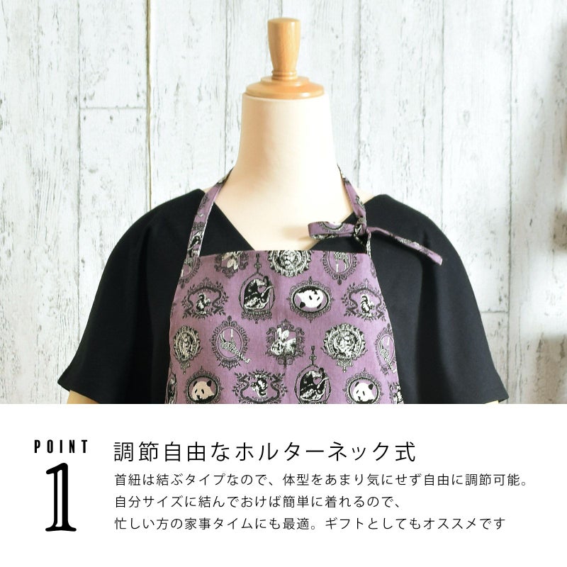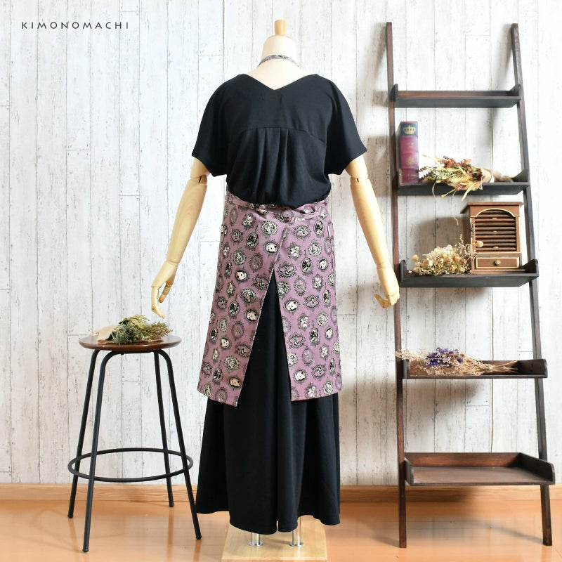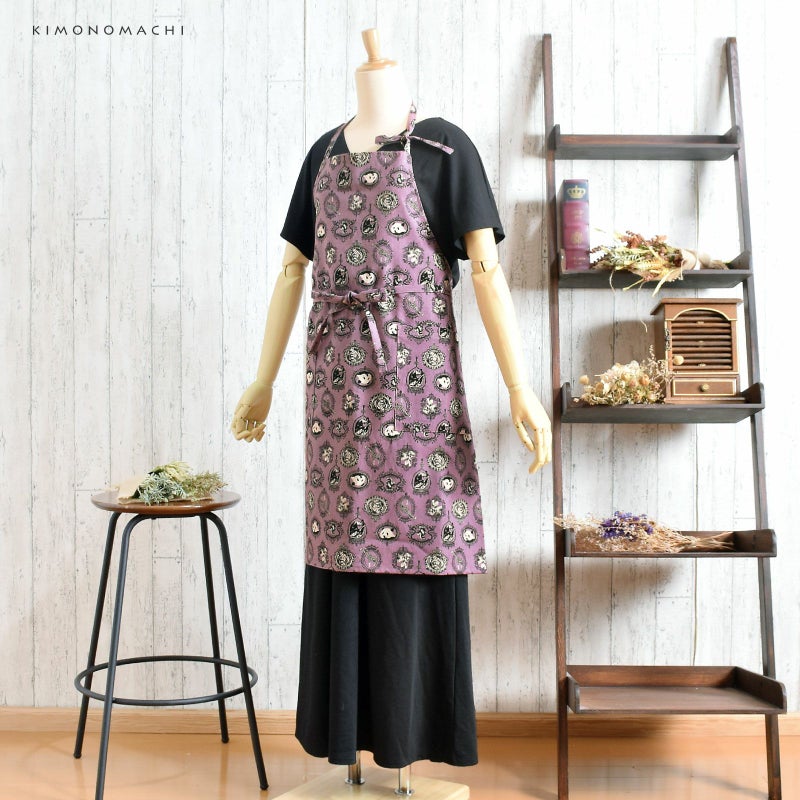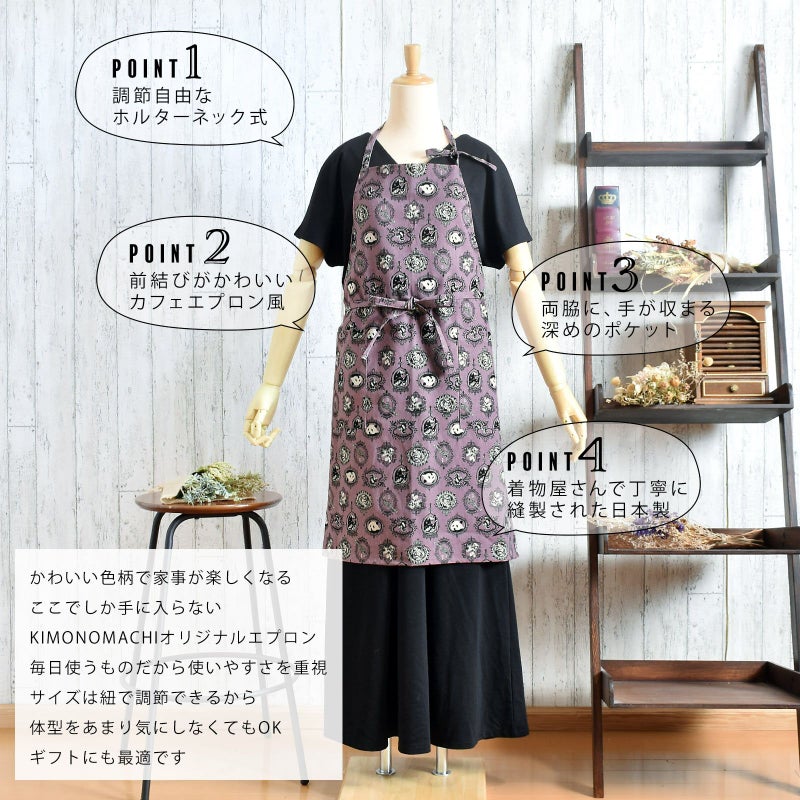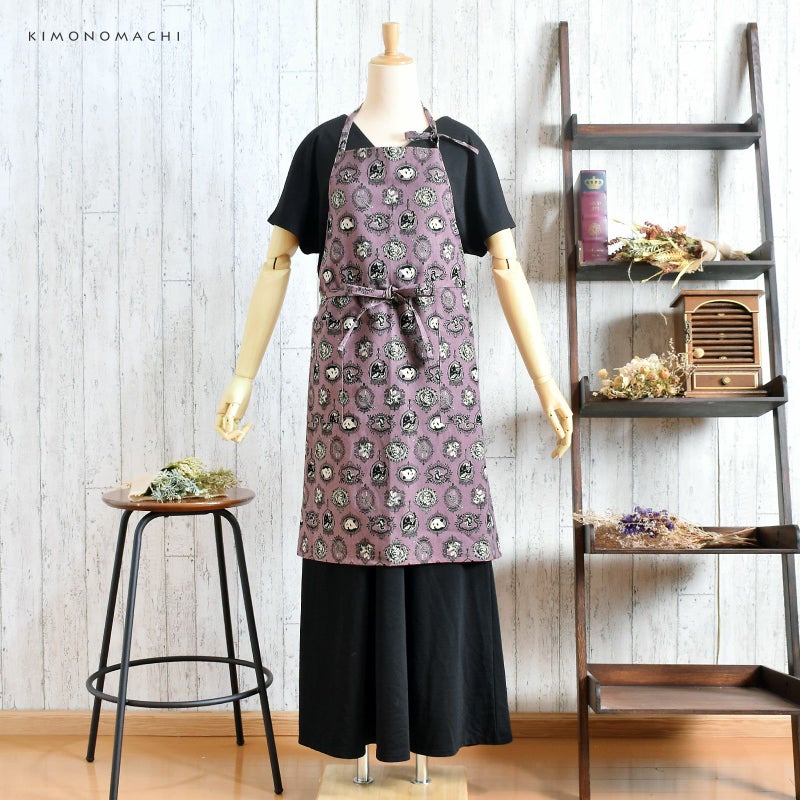 エプロン「パープル アニマルエンブレム」 実用的 日本製 オシャレ かわいい KIMONOMACHI オリジナル カフェエプロン 母の日 敬老の日 誕生日 プレゼント、ギフト、贈り物に最適 【送料無料】