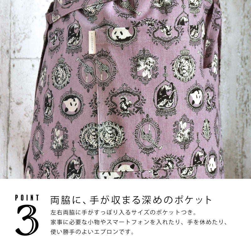 3. エプロン「パープル アニマルエンブレム」 実用的 日本製 オシャレ かわいい KIMONOMACHI オリジナル カフェエプロン 母の日 敬老の日 誕生日 プレゼント、ギフト、贈り物に最適<H> 【送料無料】【メール便対応可】wm★10%OFF