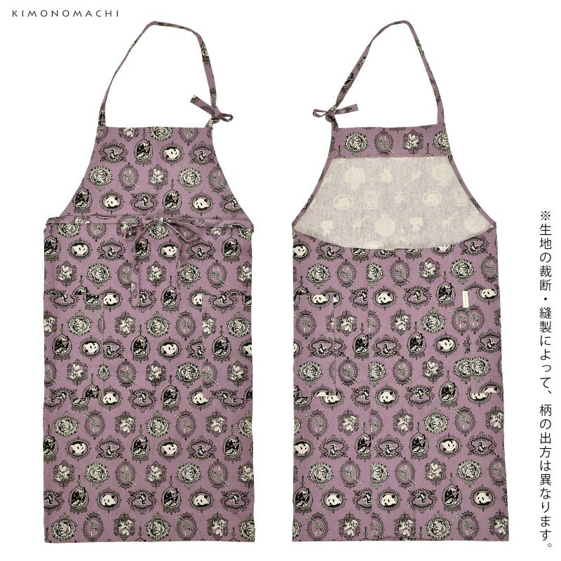 エプロン「パープル アニマルエンブレム」 日本製 オシャレ かわいい KIMONOMACHI オリジナル カフェエプロン 母の日 敬老の日 誕生日 プレゼント、ギフト、贈り物に最適<H>【メール便対応可】