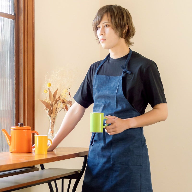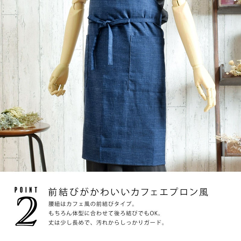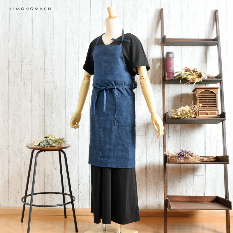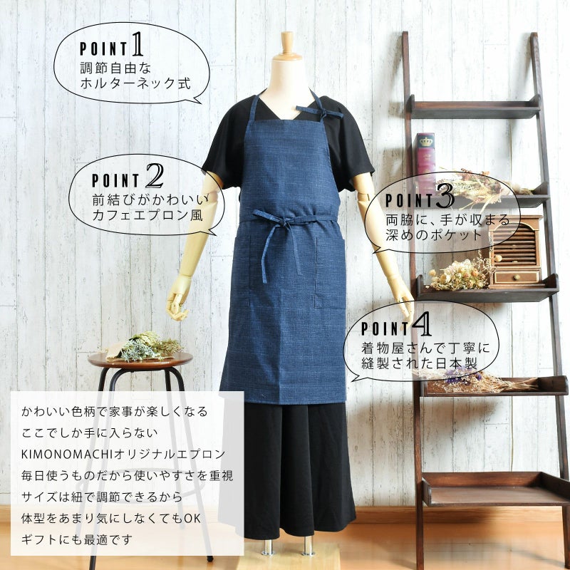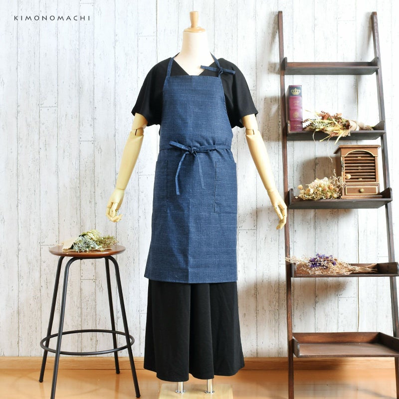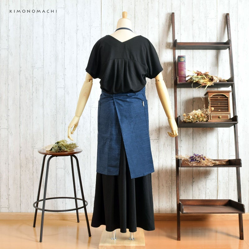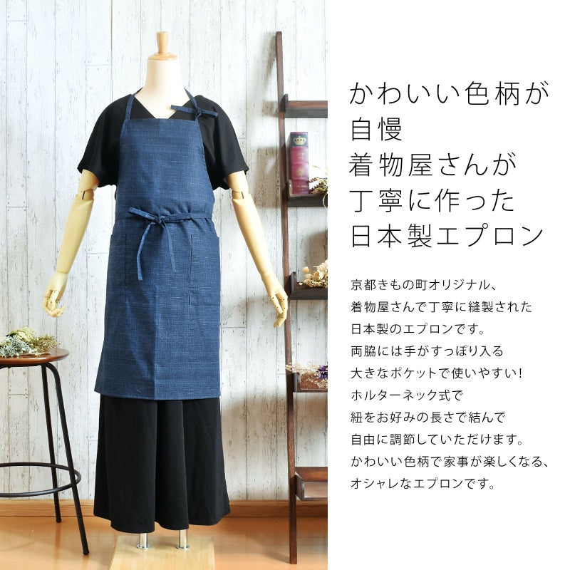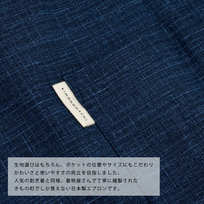エプロン「濃藍 紬調」 日本製 オシャレ かわいい KIMONOMACHI オリジナル カフェエプロン 母の日 敬老の日 誕生日 プレゼント、ギフト、贈り物に最適<H>【メール便対応可】