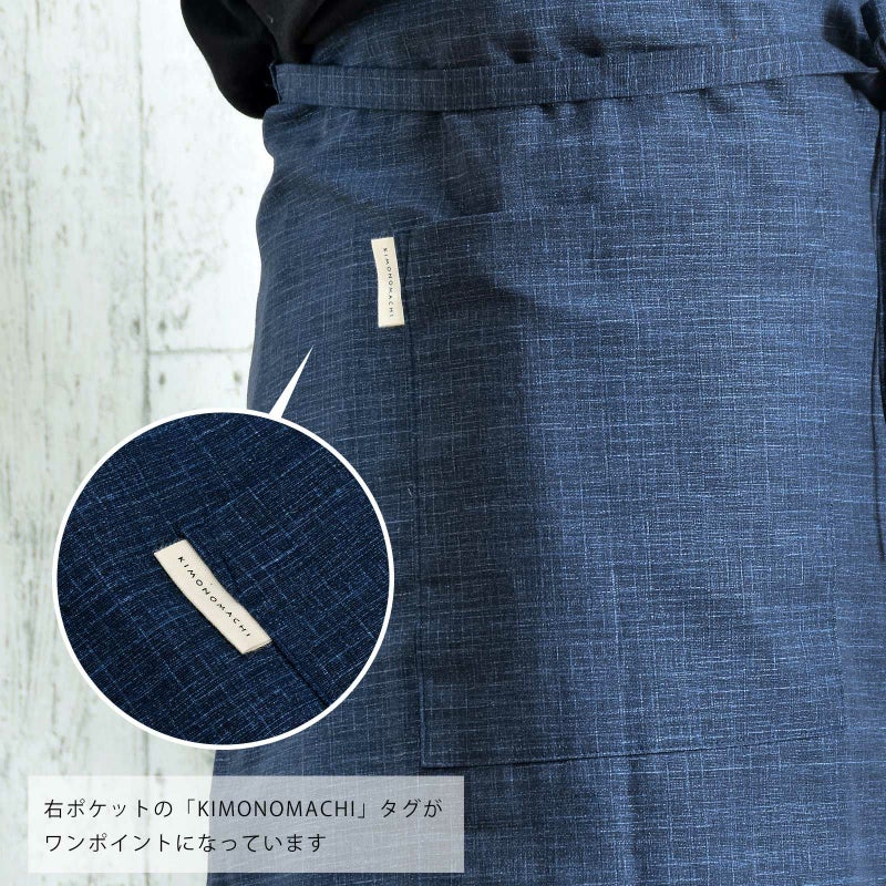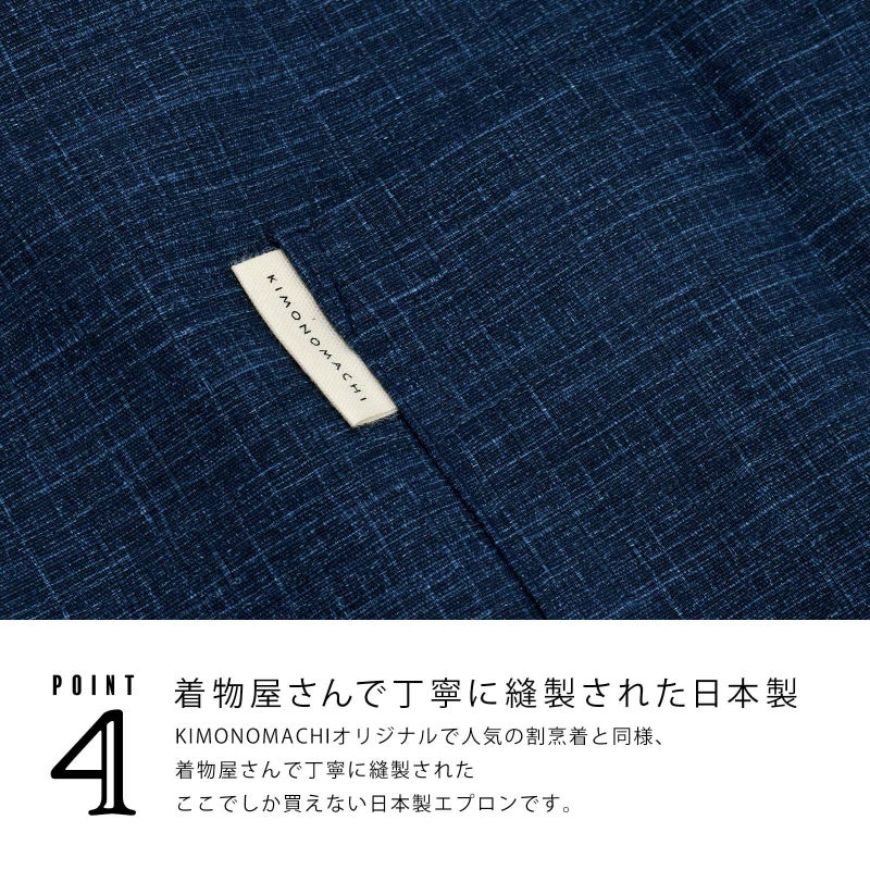 4. エプロン「濃藍 紬調」 実用的 日本製 オシャレ かわいい KIMONOMACHI オリジナル カフェエプロン 母の日 敬老の日 誕生日 プレゼント、ギフト、贈り物に最適<H> 【送料無料】【メール便対応可】ss2503wkm10