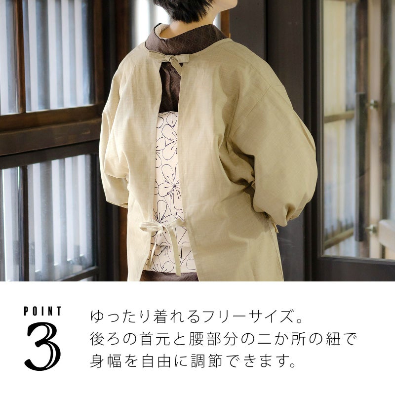 家事や料理など作業時の汚れ防止に、着物だけでなく普段着の洋服にも合わせていただけます。