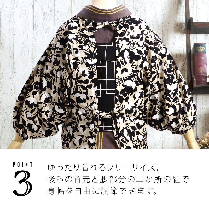 家事や料理など作業時の汚れ防止に、着物だけでなく普段着の洋服にも合わせていただけます。