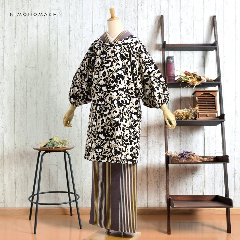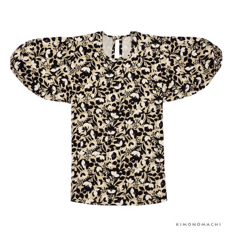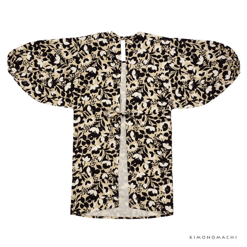 たっぷりとした袖ですが、袖口はゴムで、袖口から着物が出ず、邪魔にならないように工夫されています。