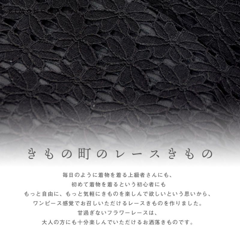 毎日のように着物を着る上級者さんにも、初めて着物を着るという初心者さんにも、もっと自由に、もっと気軽にきものを楽しんでほしいという思いから、ワンピース感覚でお召いただけるレースきものを作りました。
