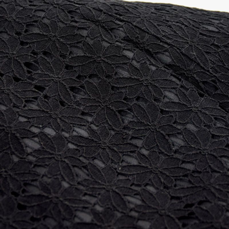 黒のエレガントなフラワーレースに黒の色裏地を重ねた配色。黒一色の中に浮かび上がるレースの陰影が艶やかな雰囲気です。