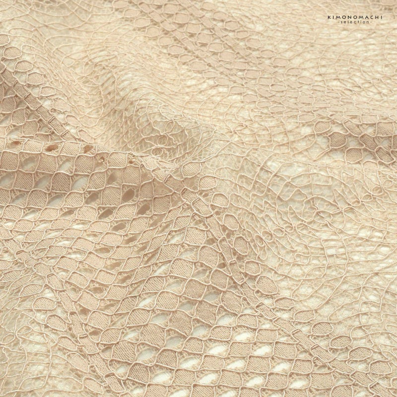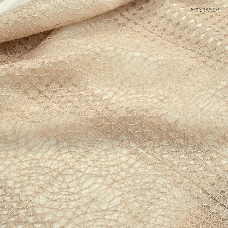 【色柄】エクルベージュのコードレースで表現された幾何学模様。異なる模様が横段に配置されています。裏地はオフホワイト。