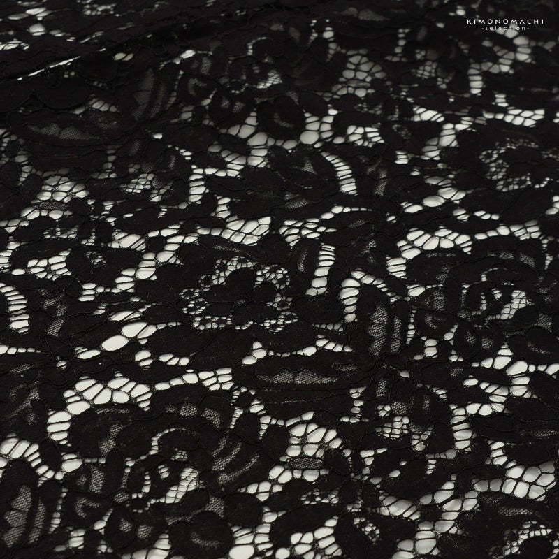 【色柄】黒の網地に大きな花々のレース。裏地はオフホワイト。