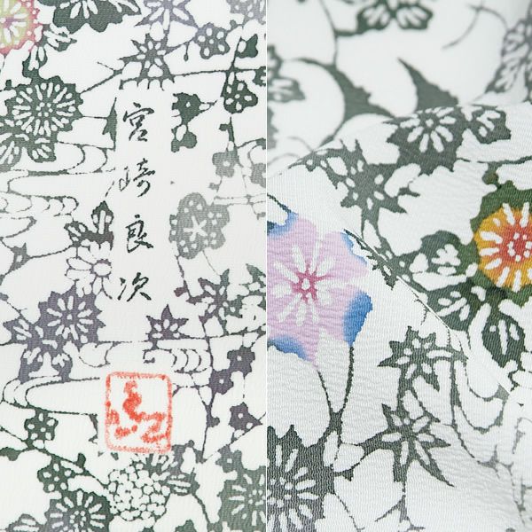 3. 【Prices down2】手ざし紅型正絹小紋着尺「観世水に草花」未仕立て 京紅型 反物 洒落着 宮崎良次 【メール便不可】<T>ss2512kck45