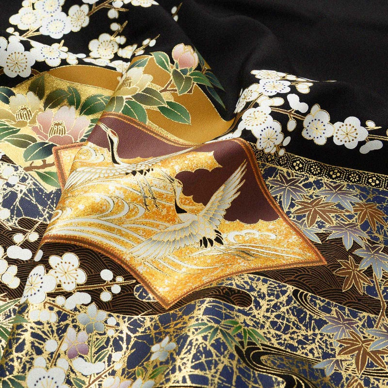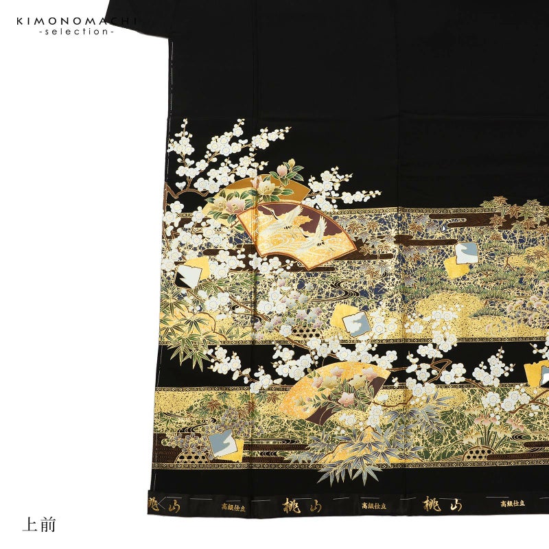 3. 【訳アリ】黒留袖 お仕立て上がり 単品「地紙に鶴」正絹 紋入れ代込み 留袖 結婚式 袷 プレタ 仕立てあがり【メール便不可】