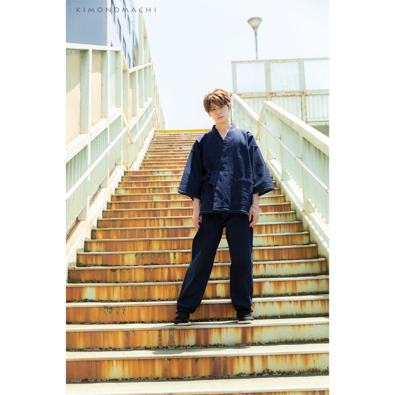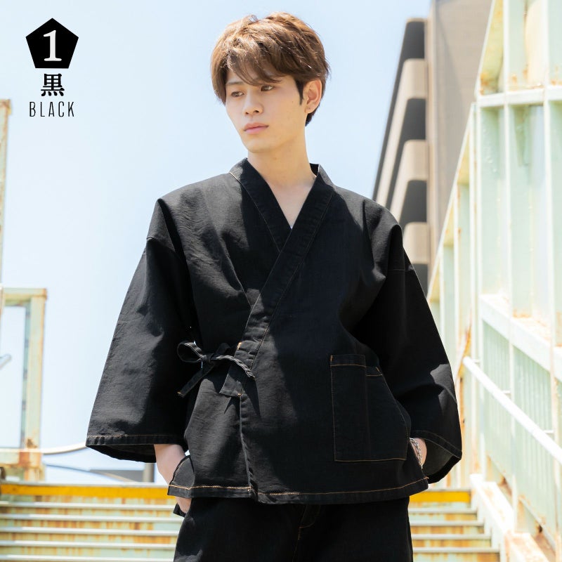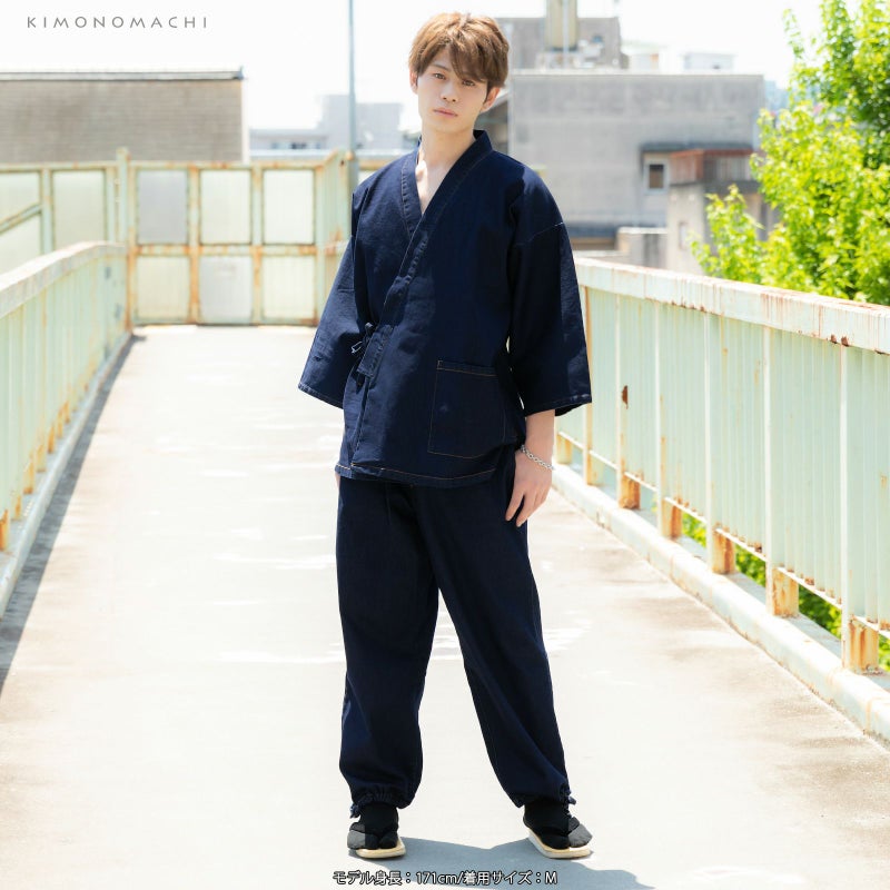 4. 作務衣 デニム メンズ 「黒・紺 全2色」 デニム作務衣 M/L/LL サイズ ストレッチ素材 さむえ セットアップ オールシーズン 和服 和装 作業着 部屋着 ルームウェア 普段着 カジュアル 【送料無料】 【メール便不可】ss2203men10
