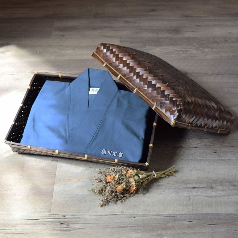 【商品内容】名前刺繍入り作務衣1点(上衣・ズボンのセット)、竹籠入り・梅熨斗ラッピング付き