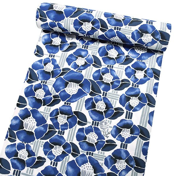 【Prices down2】セミオーダー洗える着物「紺青色 椿と鈴」クイーンサイズ 小紋 ポリエステル着物 化繊着物 お仕立て代込み 【メール便不可】ss2512kck25