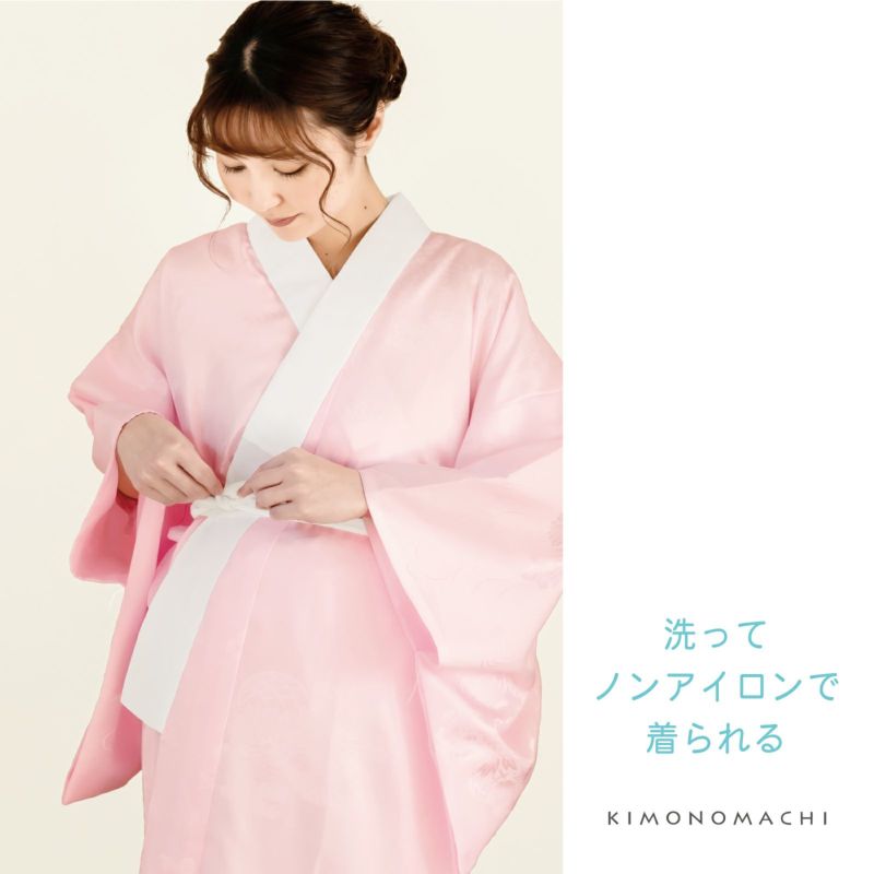 洗える 長襦袢 「ピンク」 S/M/L/LLサイズ 掛け衿つき 地紋入り 長襦袢 洗える襦袢 白半衿付き お仕立て上がり長襦袢 掛衿 掛け襟 ポリエステル 洗える長襦袢 衣紋抜きなし 小さいサイズ 大きいサイズ 【メール便不可】ss2409wkm10