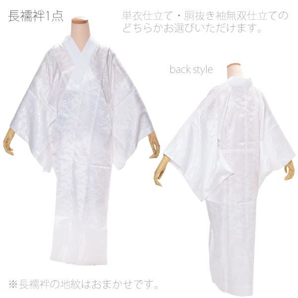 長襦袢は、白色のスタンダードな長襦袢です。ポリエステル素材でご家庭でお洗濯していただけます。