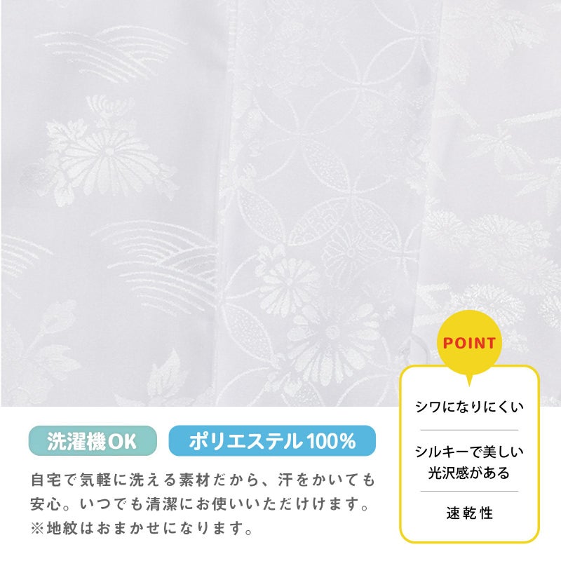 長襦袢は、白色のスタンダードな長襦袢です。ポリエステル素材でご家庭でお洗濯していただけます。