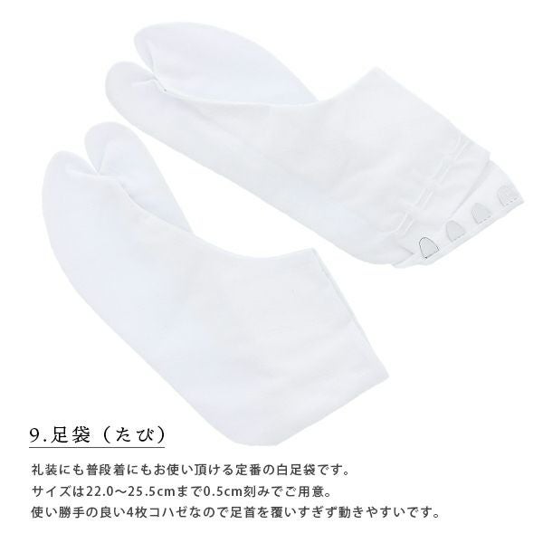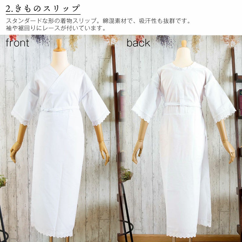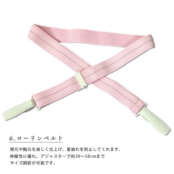 3. 着付け小物セット S M L LL 長襦袢もついた着付けセット 着物スリップ 足袋 コーリンベルト 腰紐 衿芯 伊達締め【メール便不可】