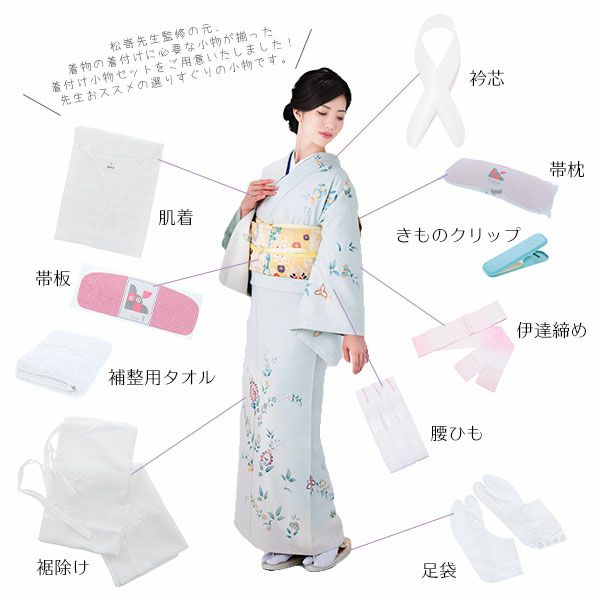 「世界で一番安心感のある着付け教室」をモットーに京都にて葵桜きもの着付け教室を主宰されている松嵜先生監修の着付け小物セットです。