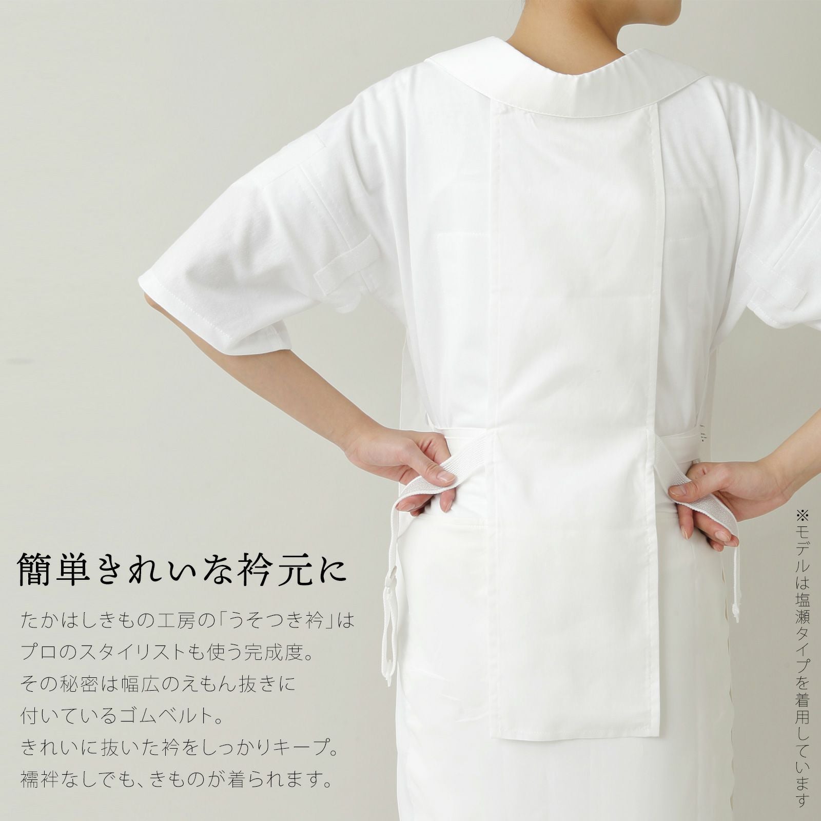他の画像を見る メール便可 店頭あり 襦袢なしでもきものが着られる!衣紋が美しく抜けて衿元崩れない たかはしきもの工房 「うそつき衿 塩瀬風半衿付き S・Mサイズ」 和装肌着 替え衿 えもん抜き フォーマルからカジュアルまで 春・秋・冬に 家で洗える 簡単着付け レディース 日本製 着物用肌着 下着 着付け 着物 【メール便対応可】<H> きもの町価格 ¥ 9,350 税込 カートに入れる お気に入りに登録する