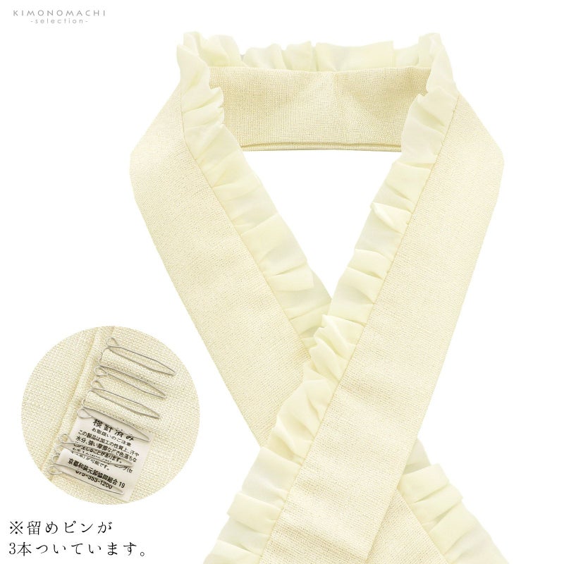 (卒業式応援75%SALE 3/5迄)フリル重ね衿 伊達衿 「フリルオフホワイト×オフホワイト」 コームピン(衿止めピン)付き 和風館 可愛い 豪華 成人式の振袖に 卒業式の袴や二尺着物に 重ね襟 フォーマル 着物 伊達襟 振袖小物 日本製 【メール便不可】
