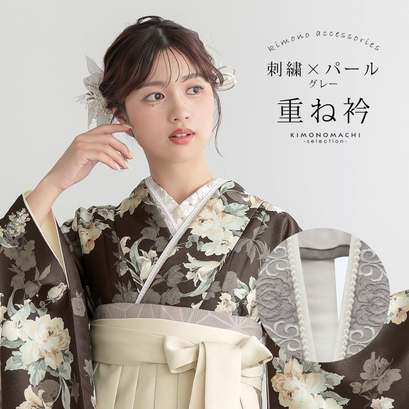 パールビーズと刺繍が施された、着物の衿元を華やかに彩る重ね衿です。