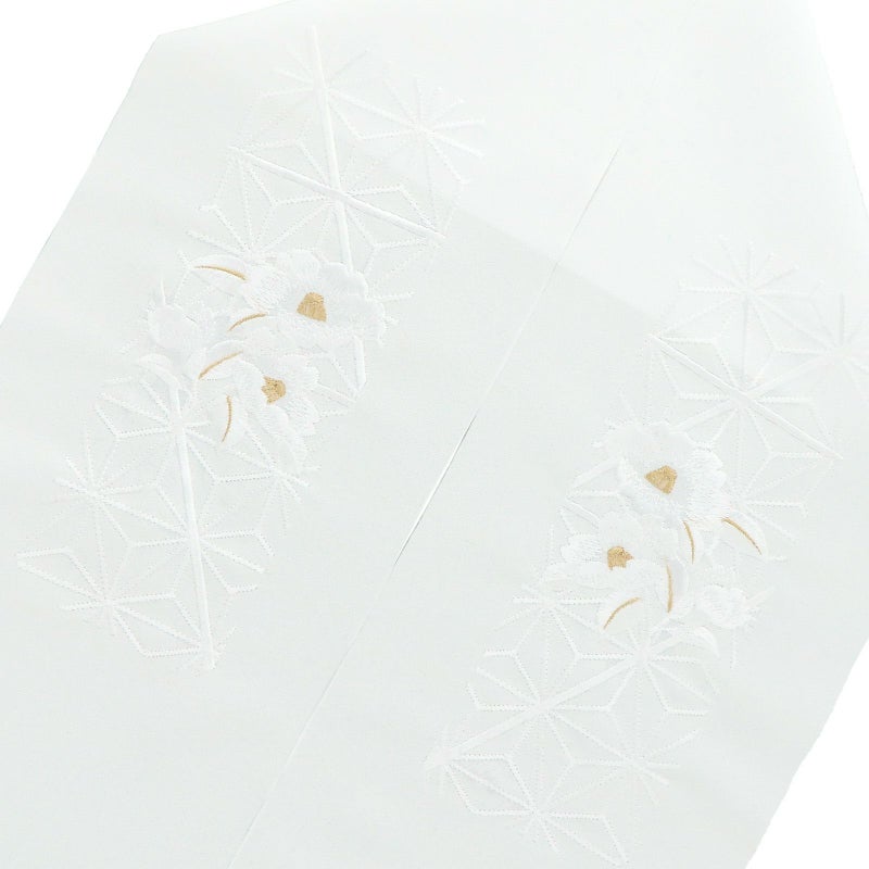 (卒業式応援75%SALE 2/19迄)半衿 刺繍 「椿 麻の葉」 刺繍半衿 半襟 洒落半衿 洒落小物 成人式の振袖、卒業式の袴に 華やか 日本製 【メール便対応可】ss2512wkm15