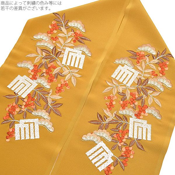 (卒業式応援最大70%OFF 2/5迄)【Prices down3】刺繍半衿「芥子色 松と南天、源氏香」シルフィル 振袖、訪問着、色留袖に テイジン 千草織 振袖半衿 【メール便対応可】ss2512wkm35