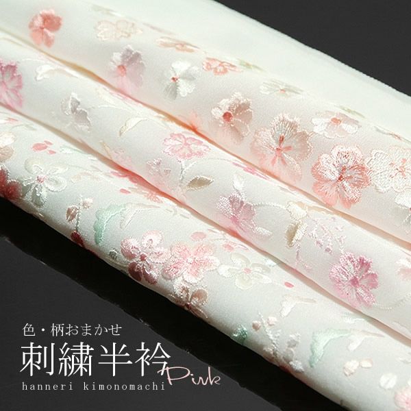 刺繍半襟 半衿 刺繍半衿「ピンク系」正絹半襟 振袖、洒落着にも 日本製[ 刺繍半衿 ] [ 和装小物 ]刺繍半襟 半衿