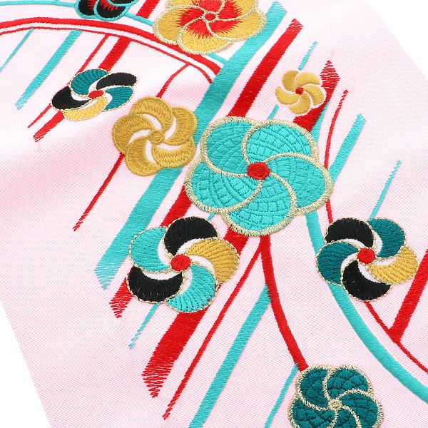 (卒業式応援75%SALE 2/19迄)【Prices down5】刺繍半衿「ピンク 斜め縞に捻じ梅」刺繍半襟 洒落衿 振袖小物 レトロ 振袖衿 【メール便不可】ss2512wkm35