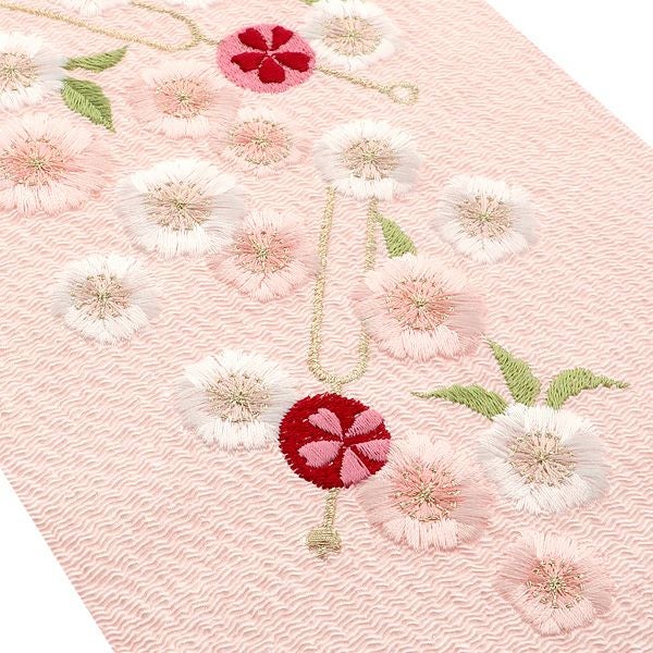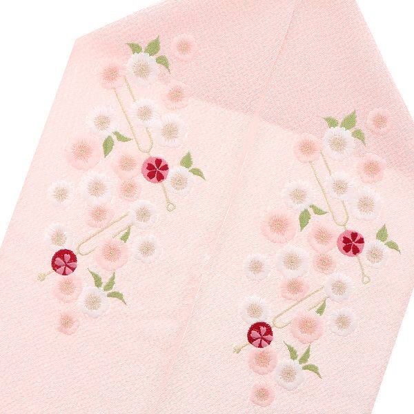 5. (卒業式応援75%SALE 2/19迄)刺繍半衿「ピンク色 かんざし、桜」刺繍半襟 洒落衿 華やか IKKO 振袖衿 【メール便不可】<H>ss2512wkm15