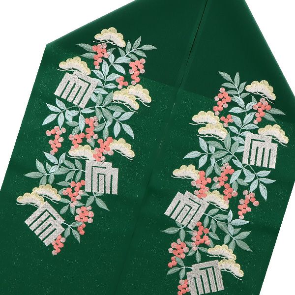 (卒業式応援75%SALE 2/19迄)【Prices down5】刺繍半衿「緑色 松と南天、源氏香」シルフィル 振袖衿 テイジン ラミエール 刺繍半襟 【メール便不可】ss2512wkm35