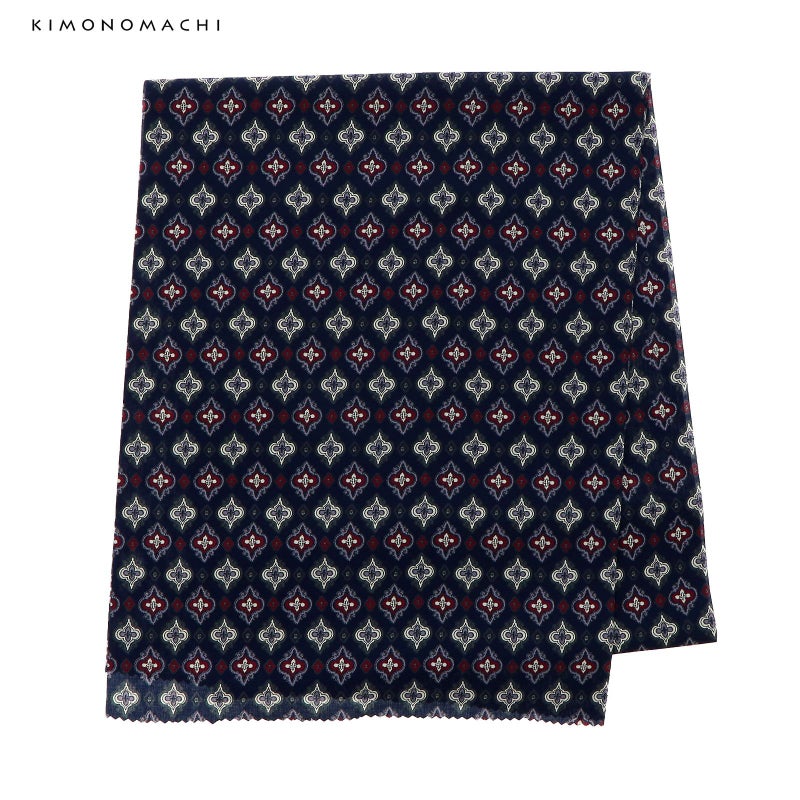 3. 柄帯揚げ 「紺 エンブレム」 帯揚げ おびあげ 帯あげ 和装小物 洗える ポリエステル カジュアル 華やか かわいい オシャレ小物 洒落小物 日本製 【メール便対応可】