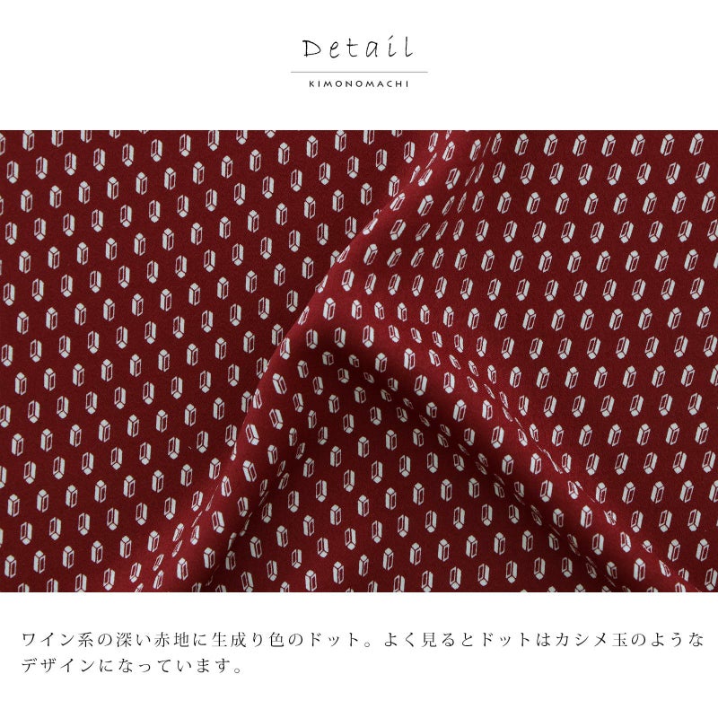 柄帯揚げ 帯揚げ 単品 数量限定 KIMONOMACHI オリジナル「ワインレッド カシメ」ポリエステル 日本製 名古屋帯 普段着着物用 京都きもの町オリジナル【メール便対応可】
