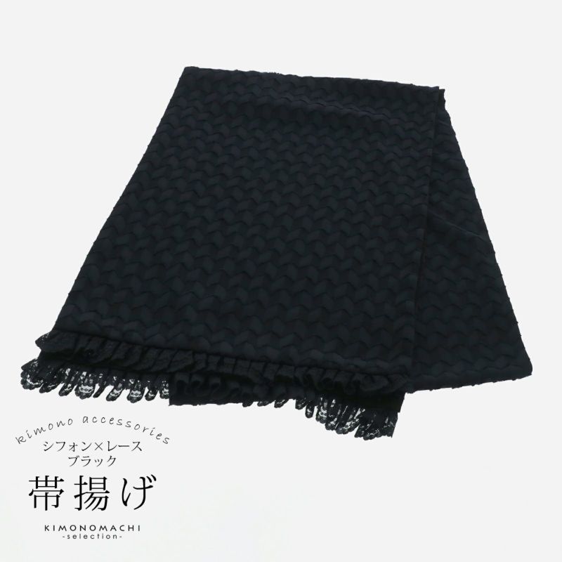4. 帯揚げ シフォン レース 単品「ブラック」ポリエステル 日本製 振袖 振り袖 振袖用 着物 成人式 和装小物【メール便不可】
