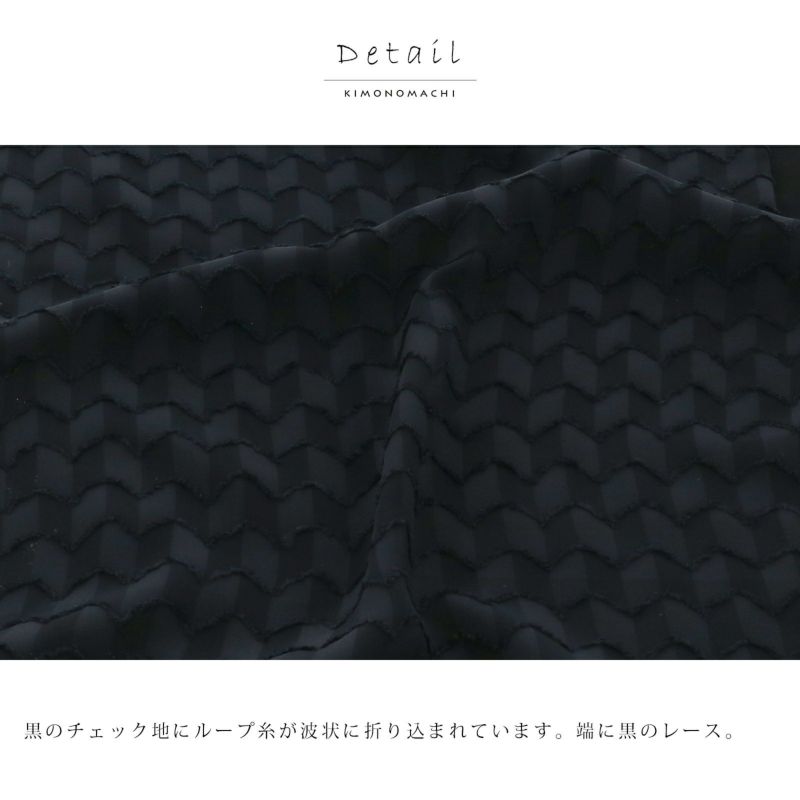 【色柄】黒のチェック地にループ糸が波状に折り込まれています。端に黒のレース。