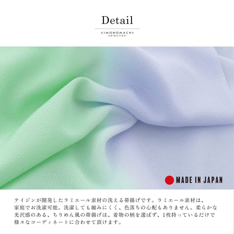 絹のような質感のポリエステル縮緬で、シワになりにくく型崩れしにくい帯揚げです。