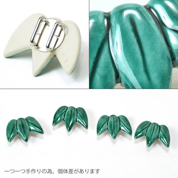 温かみのある陶器の手作り帯留め 【Prices down】陶器帯留め「緑色 笹」陶器 和装小物 洒落小物 【メール便不可】