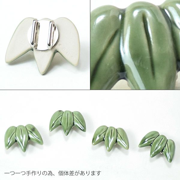3. 【Prices down】陶器帯留め「灰緑色 笹」陶器 和装小物 洒落小物 【メール便不可】ss2303wkm10