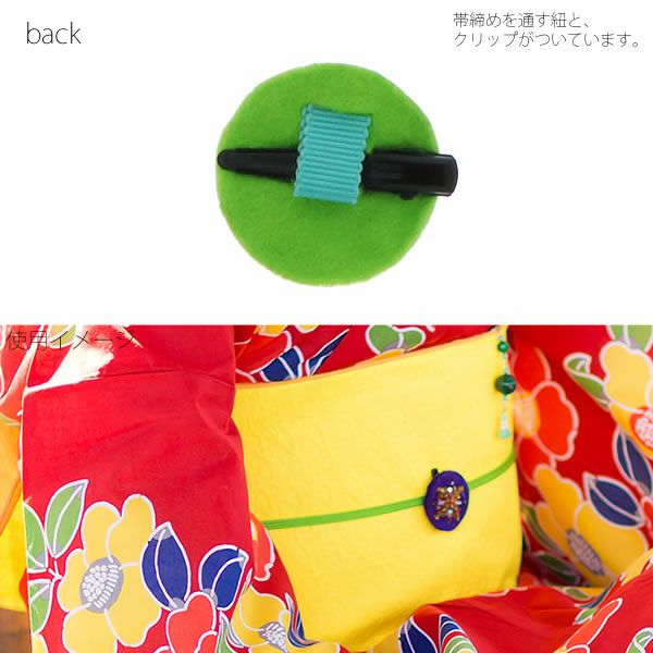 4. 【Prices down】フェルト帯留めクリップ「ブルー、グリーン、イエロー」クリップ髪飾り 和装小物 浴衣 髪飾り 2way 【メール便不可】ss2603odm60