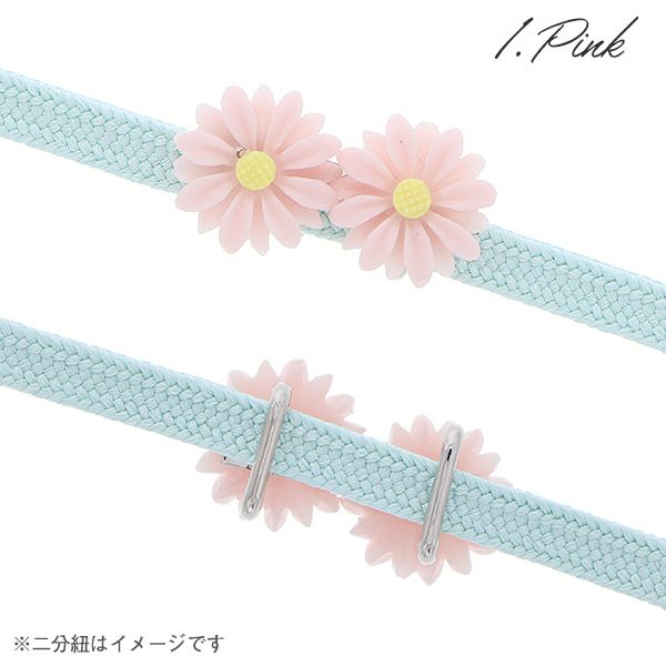 マーガレットのお花の帯留めです。二つ並んだお花が可愛らしい雰囲気。着物にはもちろん、浴衣にもポップに合わせていただけます。