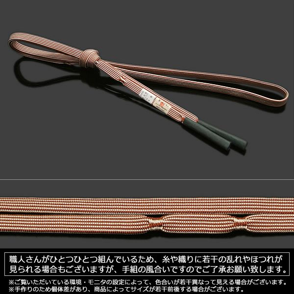 4. 【Prices down2】正絹帯締め 洒落向け「ブラウン ストライプ」洒落小物 日本製 京都西陣 洒落帯締め 0ss2512ojm60