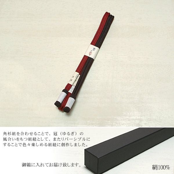 5. 日本製帯締め「翠嵐工房帯〆」2レッドパープル×赤みのある黒色帯締めリバーシブルタイプ【メール便不可】<R>ss2512ojm20
